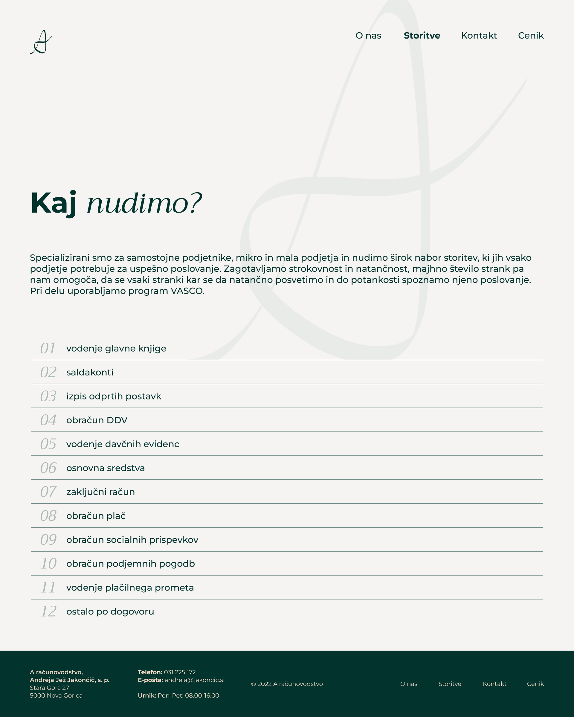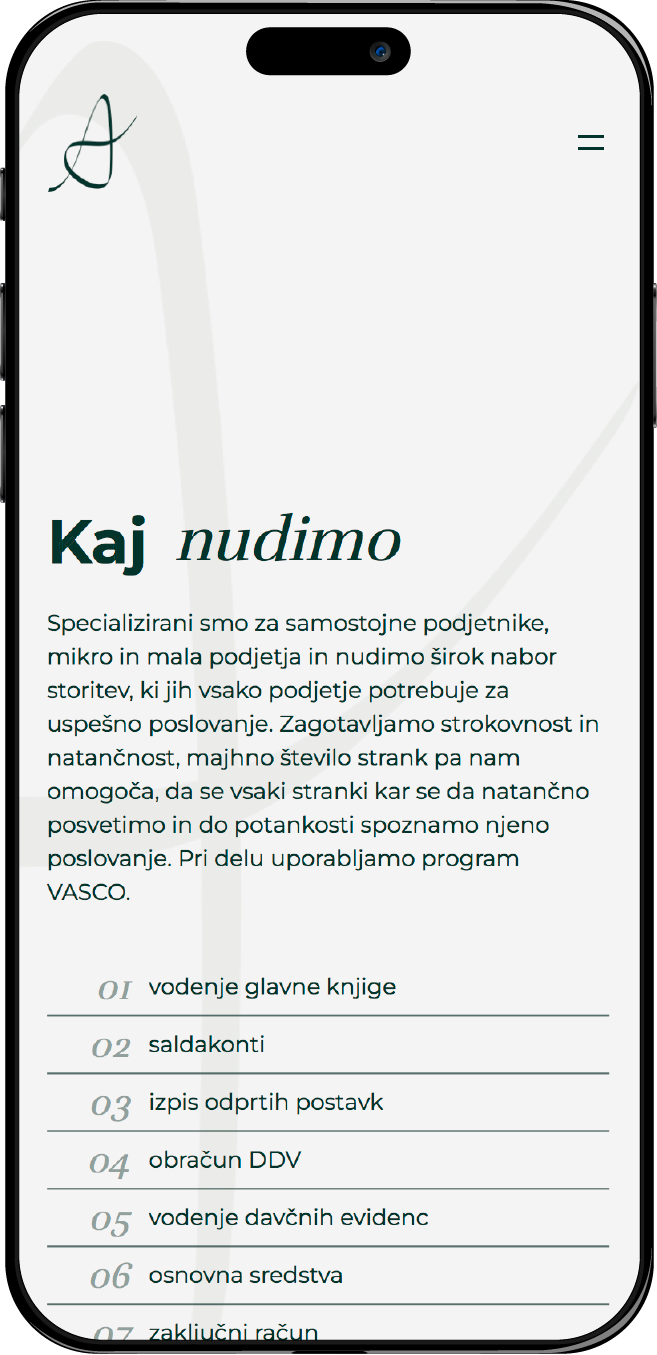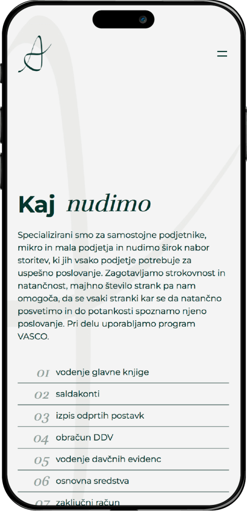 A računovodstvo is a website created for an accounting firm focused on providing clients with easy access to essential information and services. The design is clean and professional, making it simple for users to navigate and quickly find what they need. Using a minimalistic approach, the website presents services clearly, helping clients connect with the team easily.